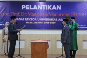 Dalam sambutannya, Dr. Mangaraja Manurung menegaskan komitmennya untuk melanjutkan estafet kepemimpinan akademik yang telah dibangun oleh pendahulunya. “Tantangan dunia pendidikan tinggi semakin kompleks, oleh karena itu kita harus terus berinovasi dan memastikan bahwa Universitas Asahan menjadi pusat keunggulan akademik yang berdaya saing menuju Toward Excellent,” ujarnya.